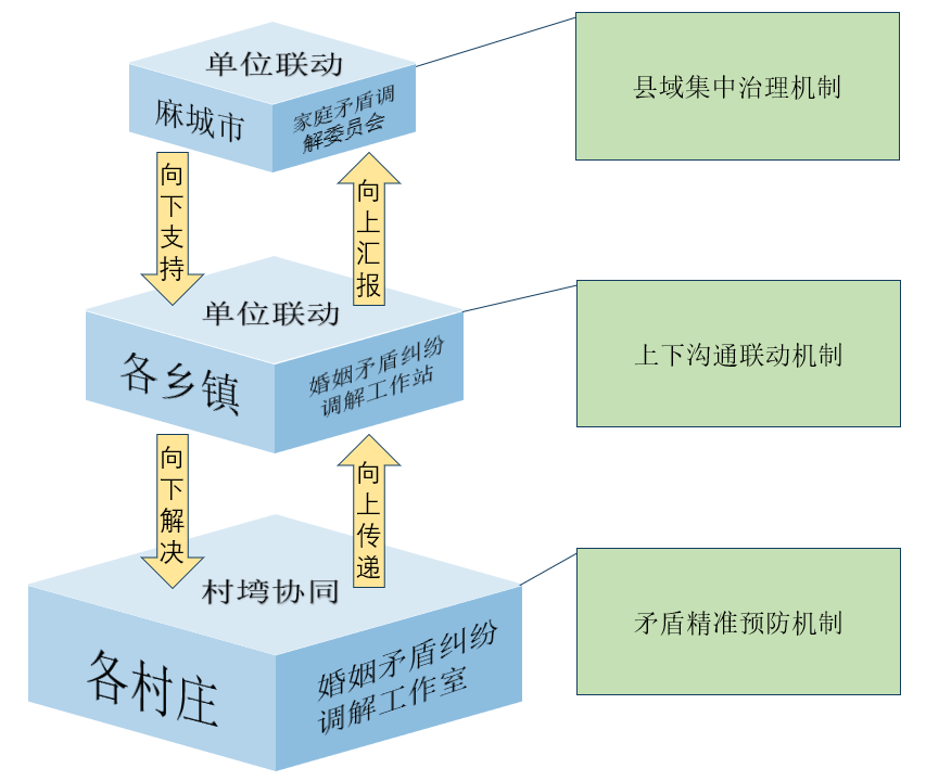 麻城市搭建三级联动的家庭矛盾治理体系,使全市各个层级、各个部门联系起来,形成县域社会整体防控机制,共同致力于家庭矛盾纠纷调解。