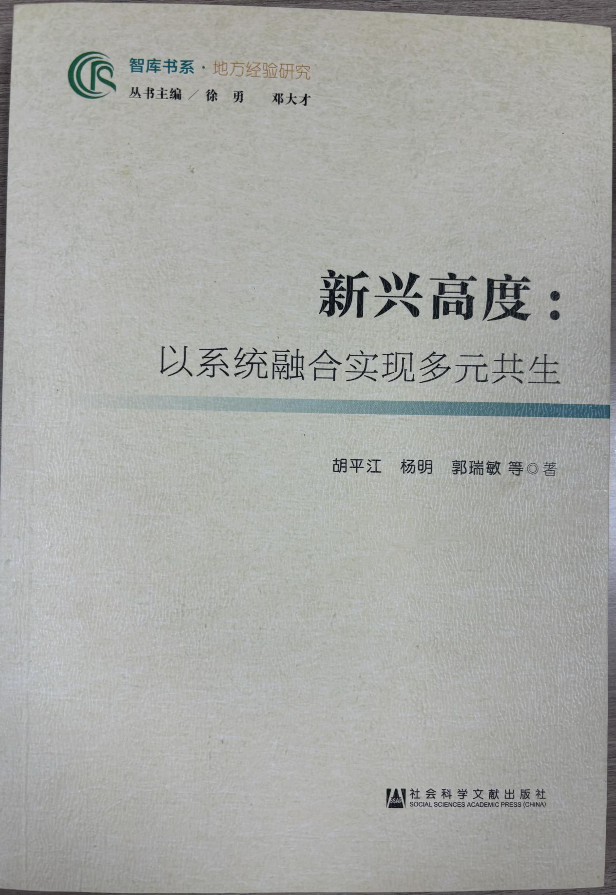 《新兴高度:以系统融合实现多元共生》由胡平江、杨明、郭瑞敏等著,社会科学文献出版社2019年2月出版。该书以广东省新兴县为例,阐述其以农业为核心引领二三产业融合发展的实践,介绍了新兴县通过发挥政府、企业、市场、农民等多方作用,建立协调、风险先担、资源整合、利益共享等机制,实现全域、增利、要素、共生融合,走出一条政企农互动充分、三产协调发展、利益联结紧密的融合新模式。