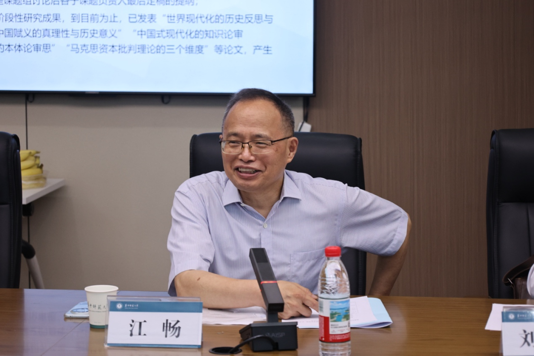 开题会第二阶段由专家组组长汪信砚教授主持。首先,项目首席专家江畅教授围绕课题的总体框架、学术创新、社会服务功能及重点难点等方面作了汇报。他指出,本课题具有重要的国家战略价值和社会现实意义,研究工作必须以高度的责任感和学术严谨性认真推进。为此,他提出了“总—分—总”的研究结构:开篇“总”部分聚焦于世界现代化进程中的中国式现代化问题,作为课题的历史起点和逻辑起点;“分”的部分是研究重点,涵盖中国式现代化的文化传统、历史经验与世界意义三个核心维度;结尾“总”部分聚焦于中国式现代化精神价值的提升,作为研究的最终落脚点。此外,江畅教授创新性地从哲学价值论视角切入,系统阐释了“中国式现代化的精神价值”概念及其内涵,为全面理解和系统把握本课题提供了理论支撑。